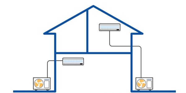 Questo facilita la climatizzazione dove lo spazio esterno può essere più limitato. Consente inoltre di riscaldare o raffrescare separatamente per zona gli spazi interni.